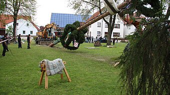 Traditionell wird am Abend vor dem 1. Mai am Dorfanger unter Beisein der Bevölkerung der Amerbacher Maibaum aufgestellt.